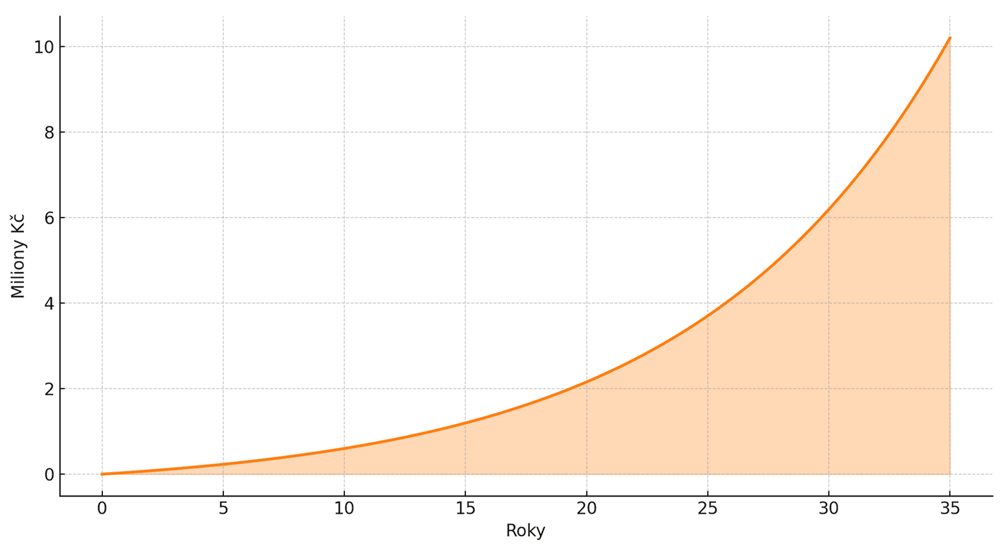 Vývoj hodnoty investice při měsíčním příspěvku 3 000 Kč a 10% průměrném ročním výnosu
