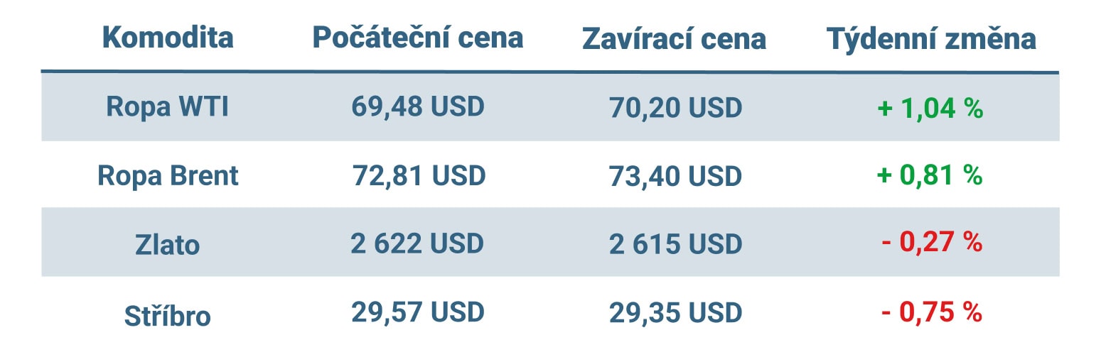 Vývoj ceny nejvýznamnějších komodit v tomto týdnu