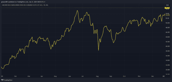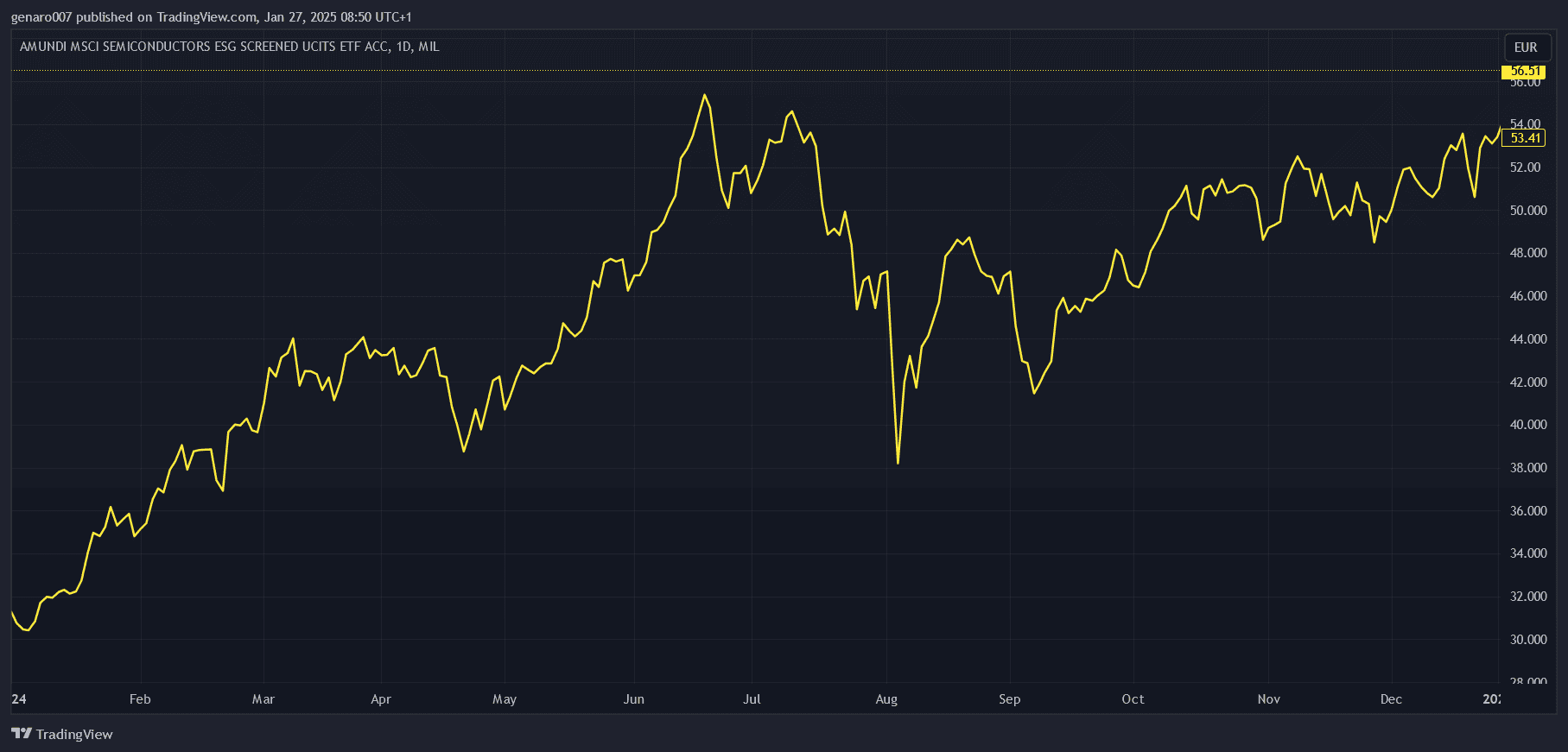 Vývoj ceny ETF Amundi MSCI Semiconductors ESG Screened v roce 2024