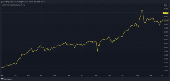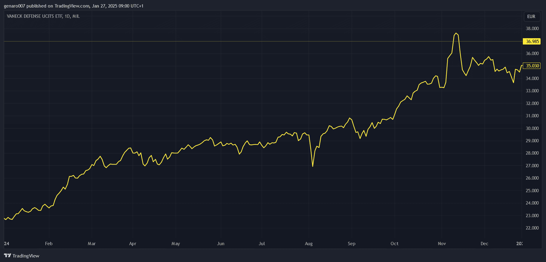 Vývoj ceny ETF VanEck Defens v roce 2024
