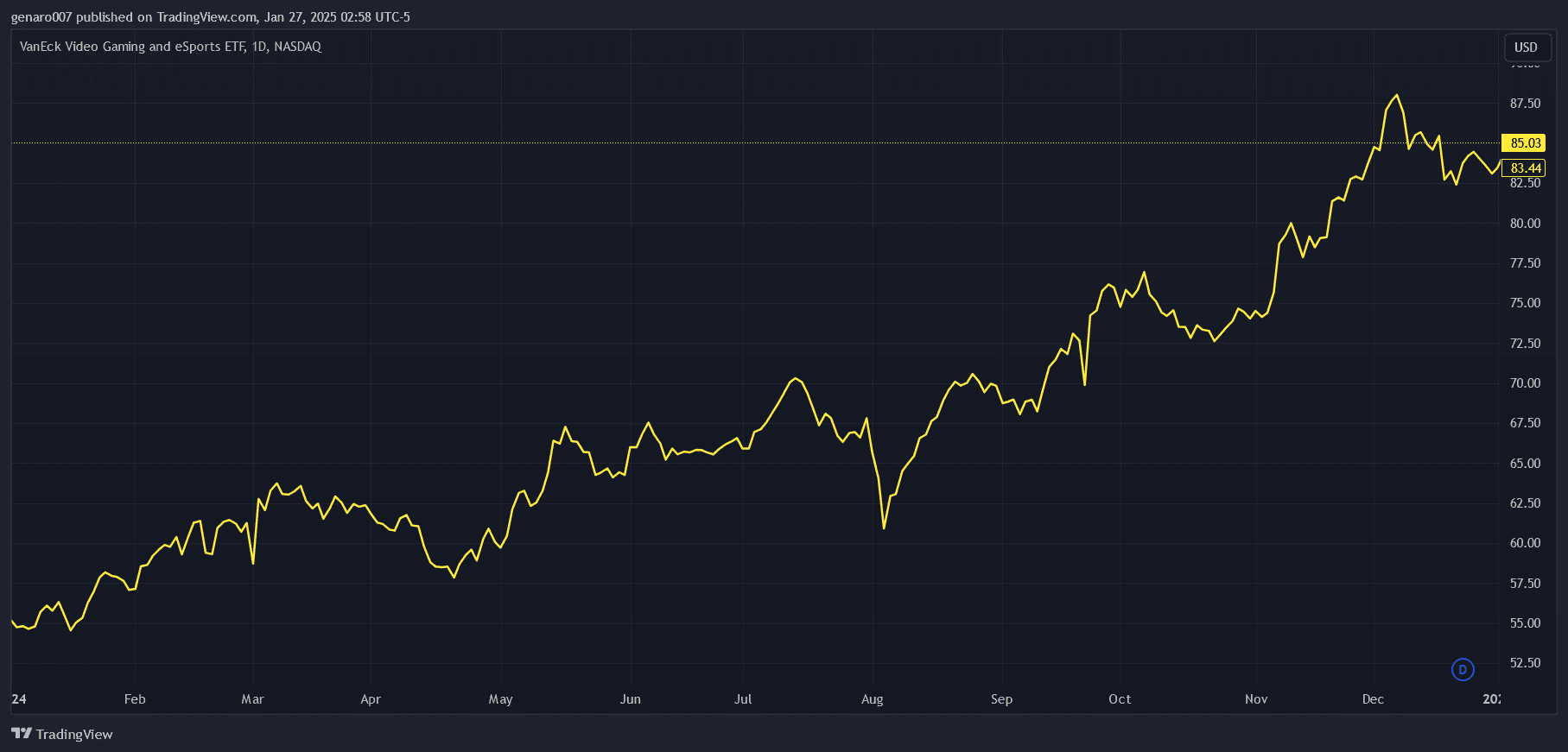 Vývoj ceny ETF VanEck Video Gaming and eSports v roce 2024