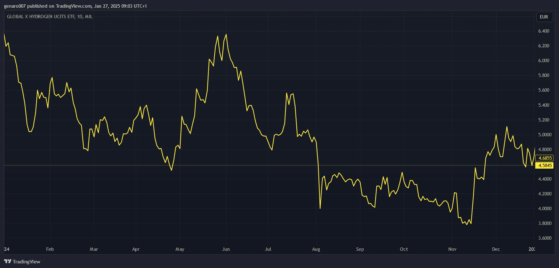 Vývoj ceny ETF Global X Hydrogen UCITS v roce 2024