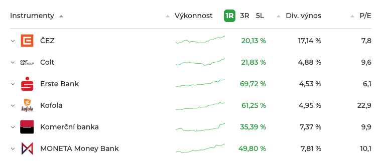 Jak už asi tušíte, české akcie nabízejí spíše zajímavé dividendy, než výrazné zhodnocení investovaných prostředků díky kapitálovému výnosu.
