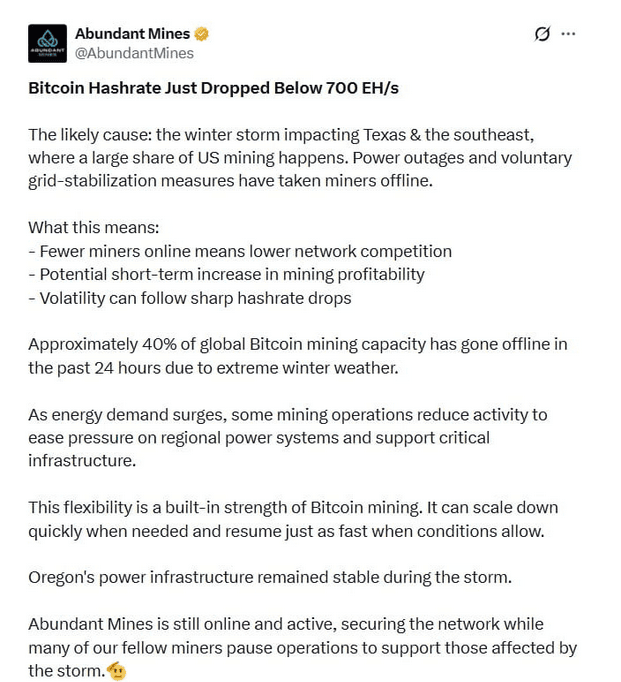 Během této bouře vypadlo až 40 % globální kapacity, přičemž například gigant Marathon Digital zaznamenal propad produkce ze 45 BTC na pouhých 7 BTC denně.