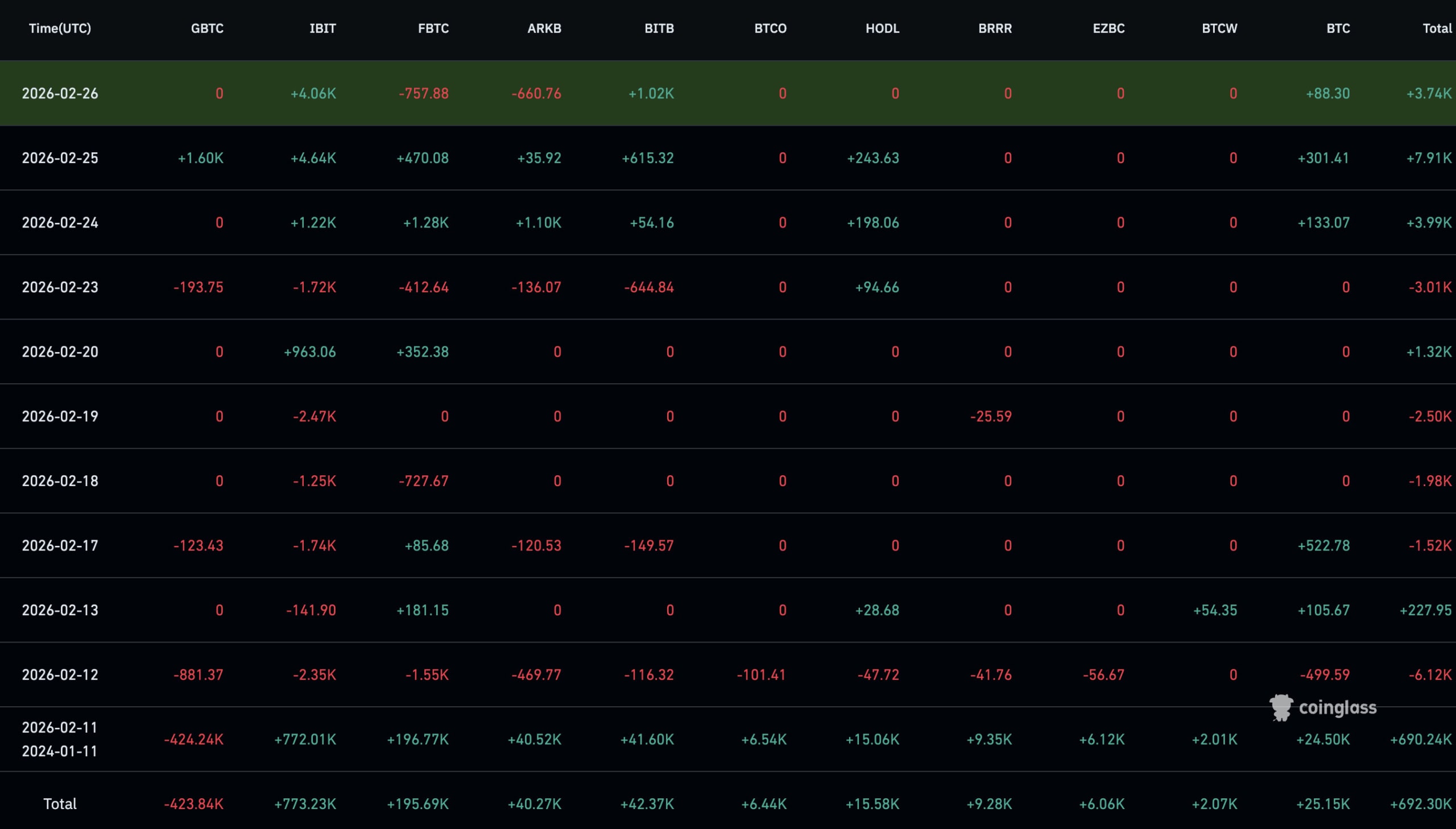 Každé z jedenácti aktivních spotových bitcoinových ETF vykázalo čisté nákupy nebo nulový tok kapitálu.