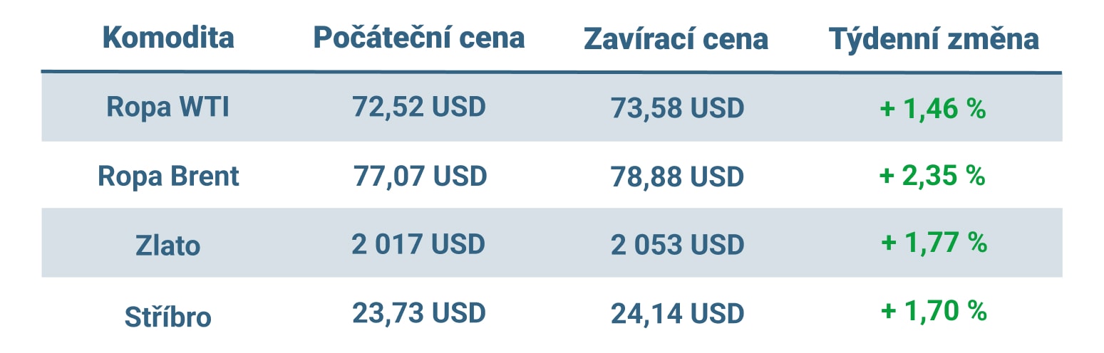 Vývoj ceny nejvýznamnějších komodit v tomto týdnu