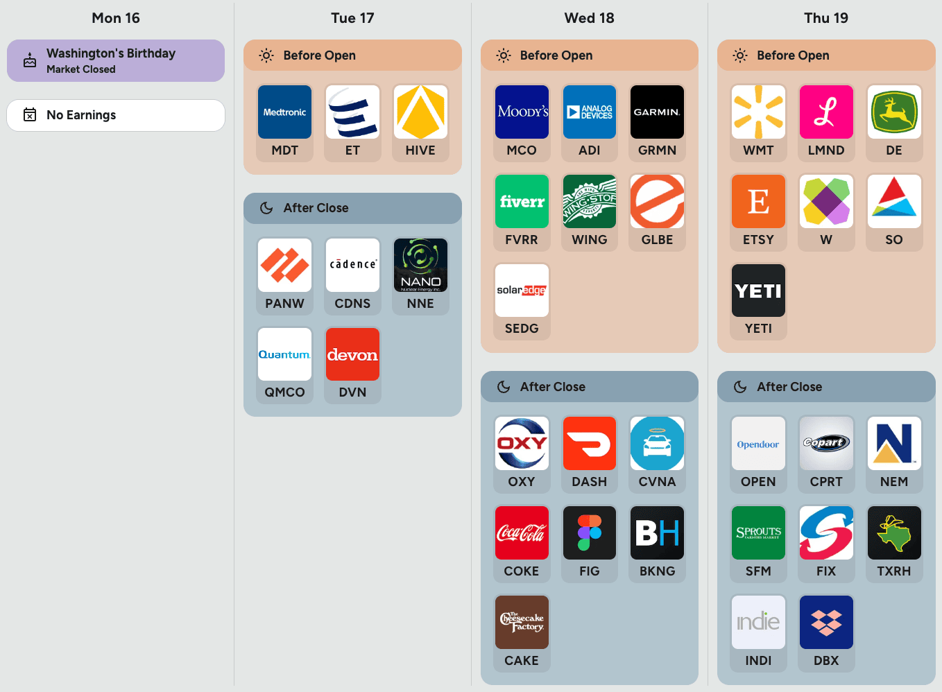 V USA začne týden zkráceně: v pondělí 16. února budou akciové trhy kvůli Presidents’ Day zavřené. Pak se pozornost rychle přesune na hospodářské výsledky.