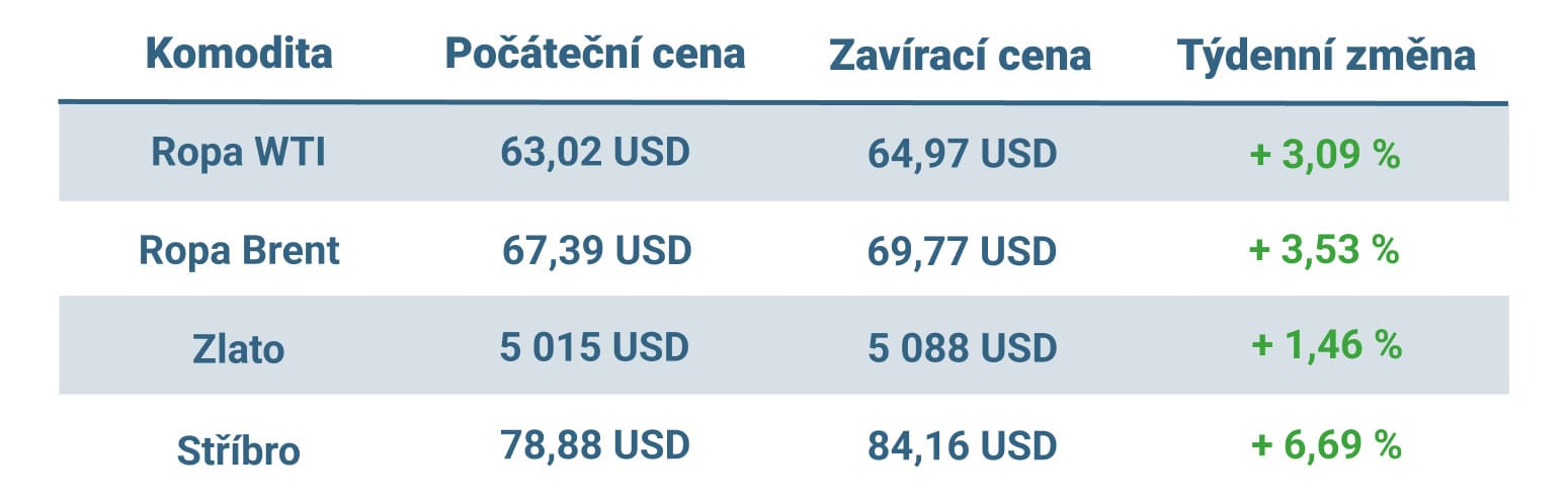 Vývoj ceny nejvýznamnějších komodit v uplynulém týdnu