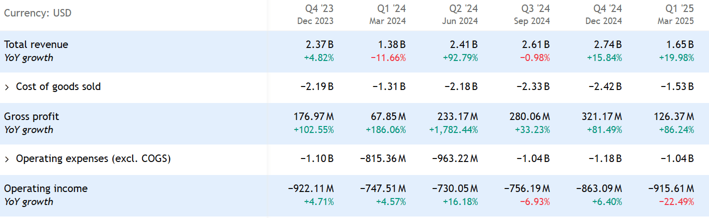 V roce 2024 vykázalo Nio ztrátu přes 3,3 miliardy USD, a i přes růst prodejů se zatím nepodařilo firmě přiblížit k ziskovosti. V Q1 2025 firma vytvořila provozní ztrátu 915 milionů USD, což bylo o 22 % více než o rok dříve.