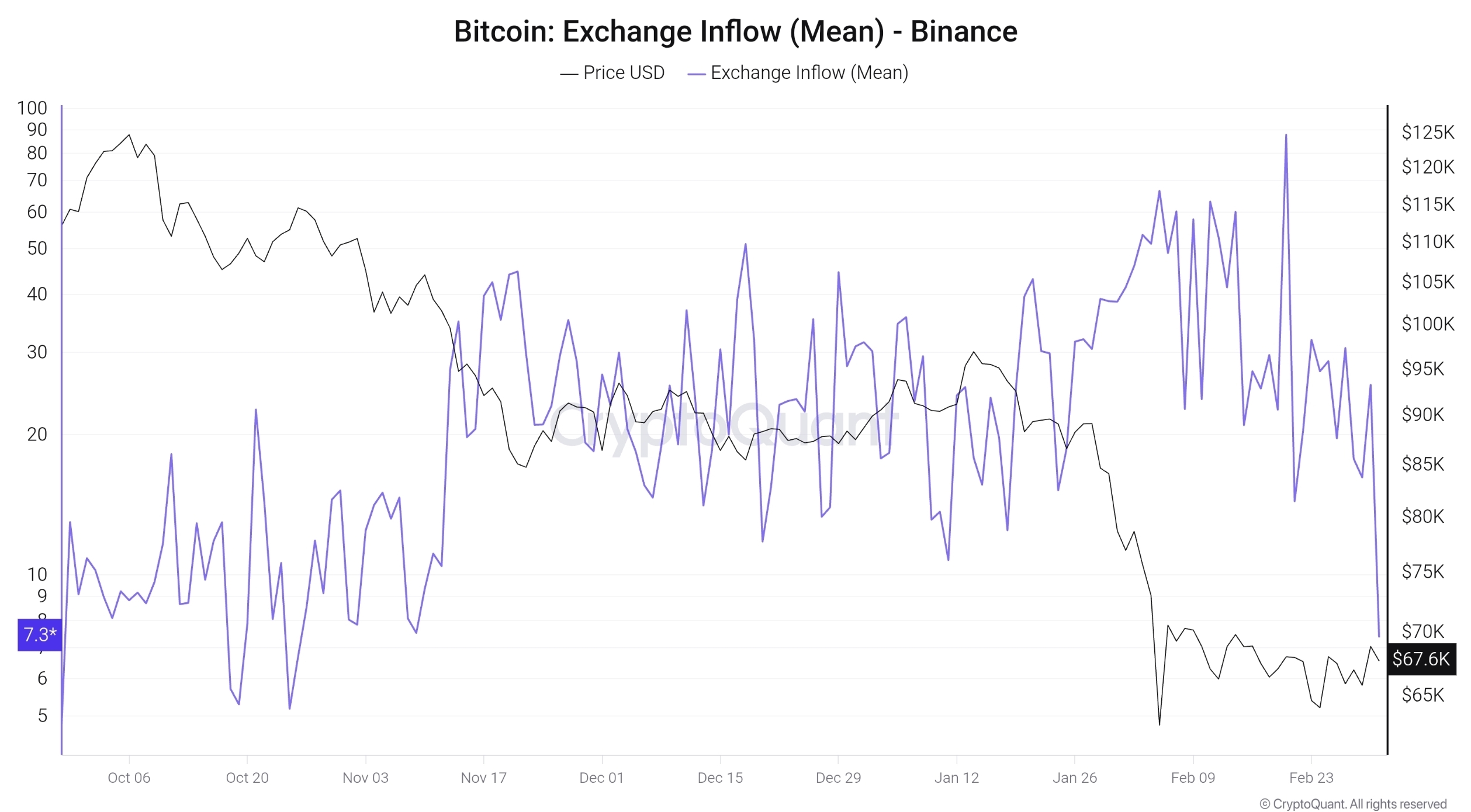 Graf Exchange Inflow (Total) sice potvrzuje zvýšenou volatilitu přílivů na přelomu ledna a února, avšak nelze hovořit o jednoznačném masivním nárůstu retailových vkladů.