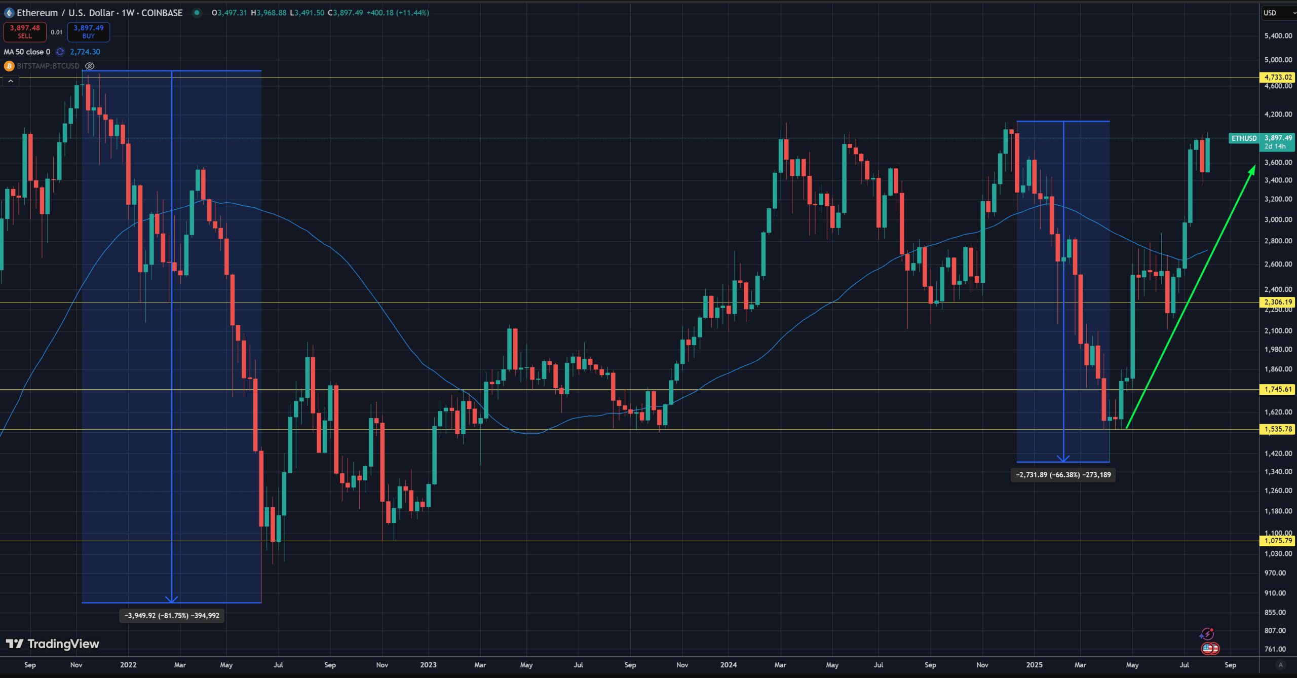 ETF fondy ztrácejí dech, zatímco institucionální investoři masivně nakupují Ethereum. Jaké signály nám dává technická analýza a co může přijít v srpnu?