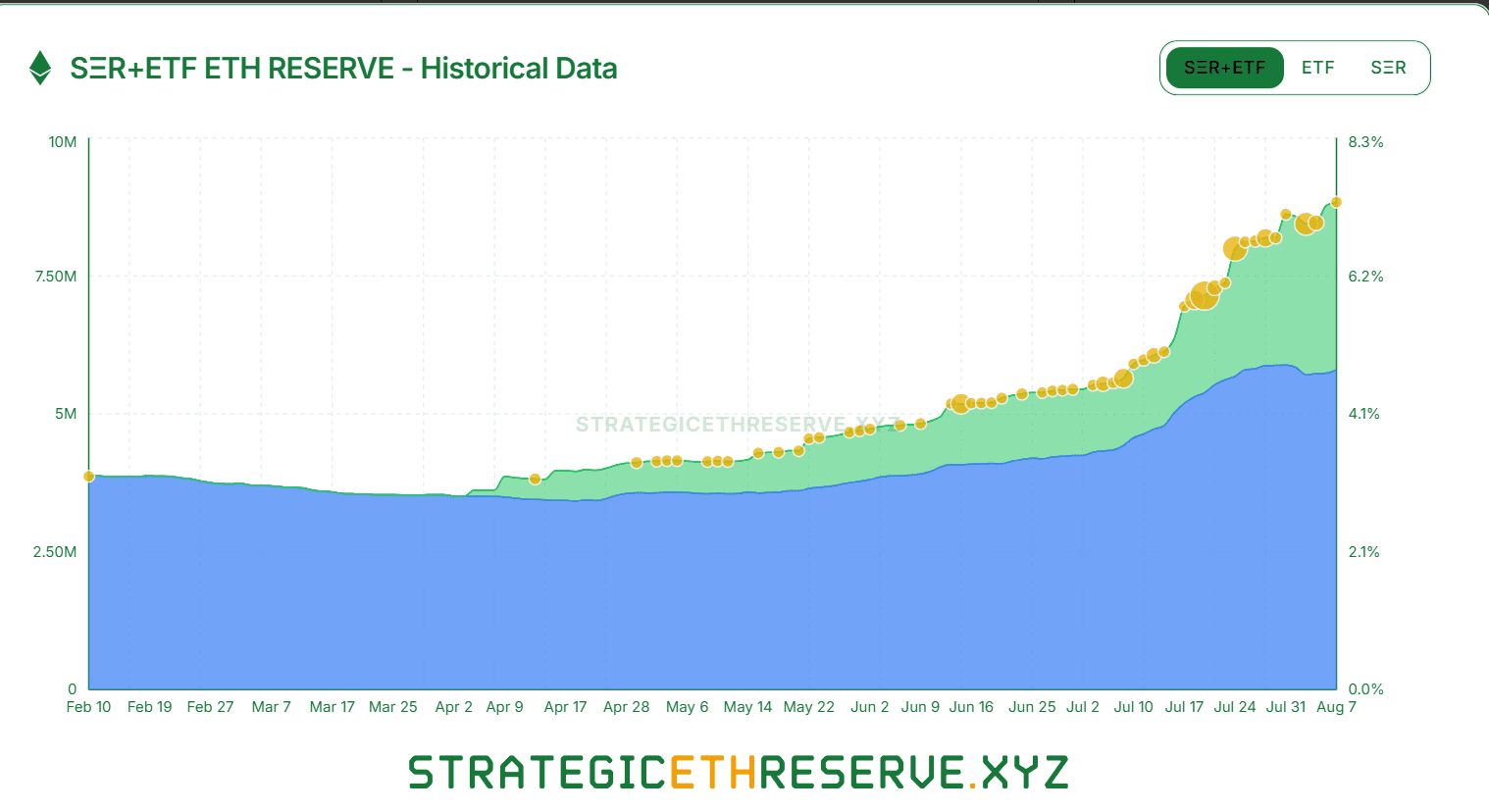 Za zmínku stojí, že Tom Lee veřejně deklaroval svou strategii, kterou je akumulace 5% celkového objemu všech ETH.