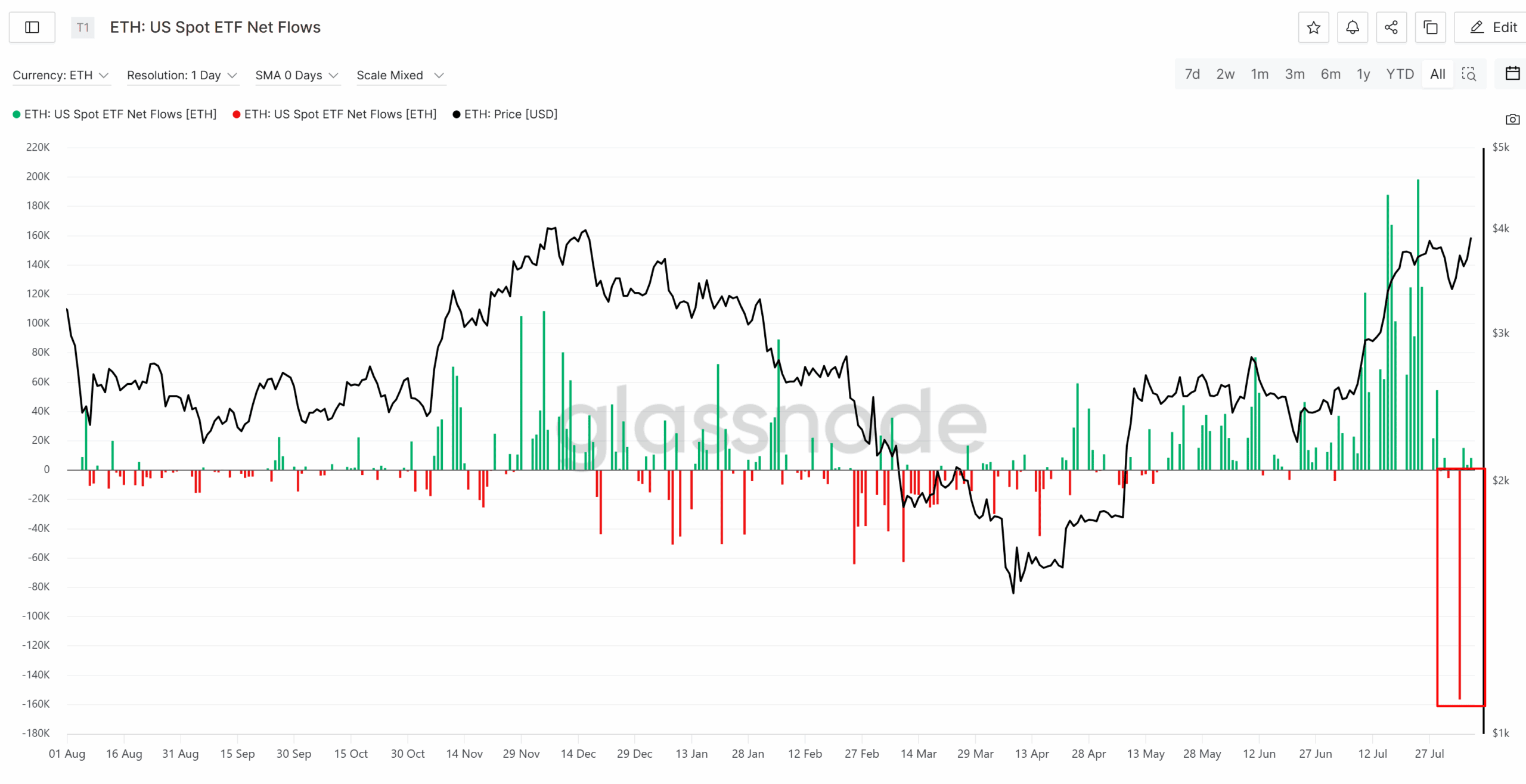 Na straně ETF Etherea jsme viděli spíše singulární distribuční událost. Nicméně takový odliv z ETFs Etherea je bezprecedentní.