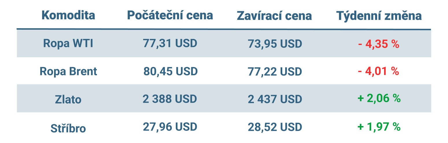 Vývoj ceny nejvýznamnějších komodit v tomto týdnu