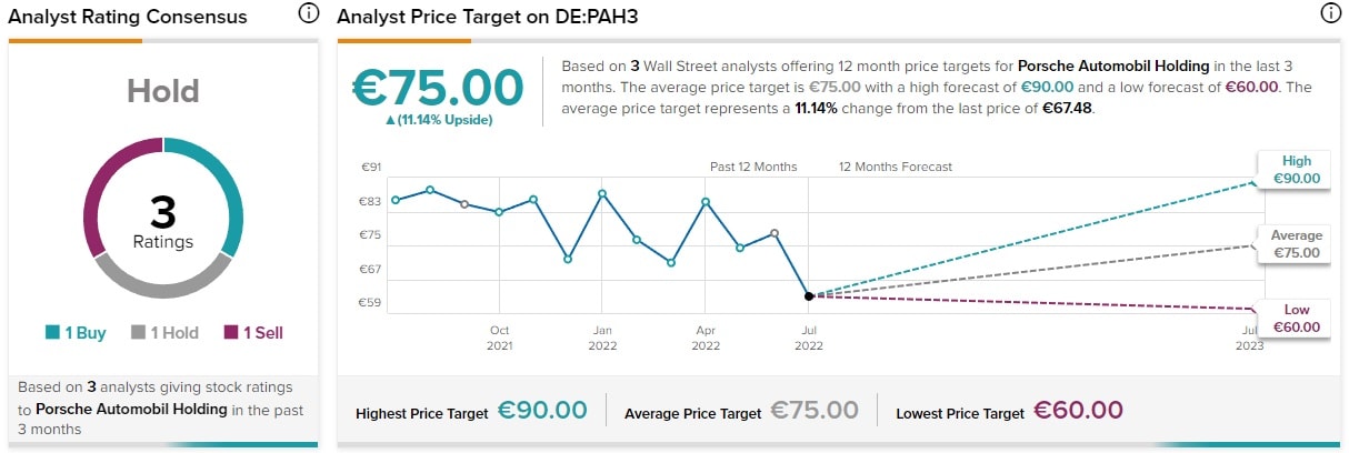 Situaci na cenovém grafu také odpovídá výhled analytiků, který je velmi strohý a pouhá tři hodnocení navíc naznačují nerozhodnost v náhledu na tyto akce. Dokonce jeden analytik predikuje stagnaci ceny akcií Porsche na hodnotě 60 EUR.