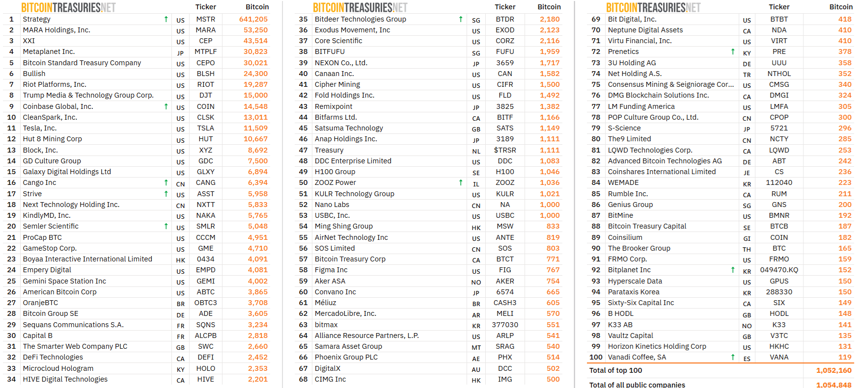 Nejlepším příkladem je Strategy (dříve MicroStrategy). Firma, kterou Michael Saylor proměnil v bitcoinovou pokladnici, má v držení přes 674 000 bitcoinů.