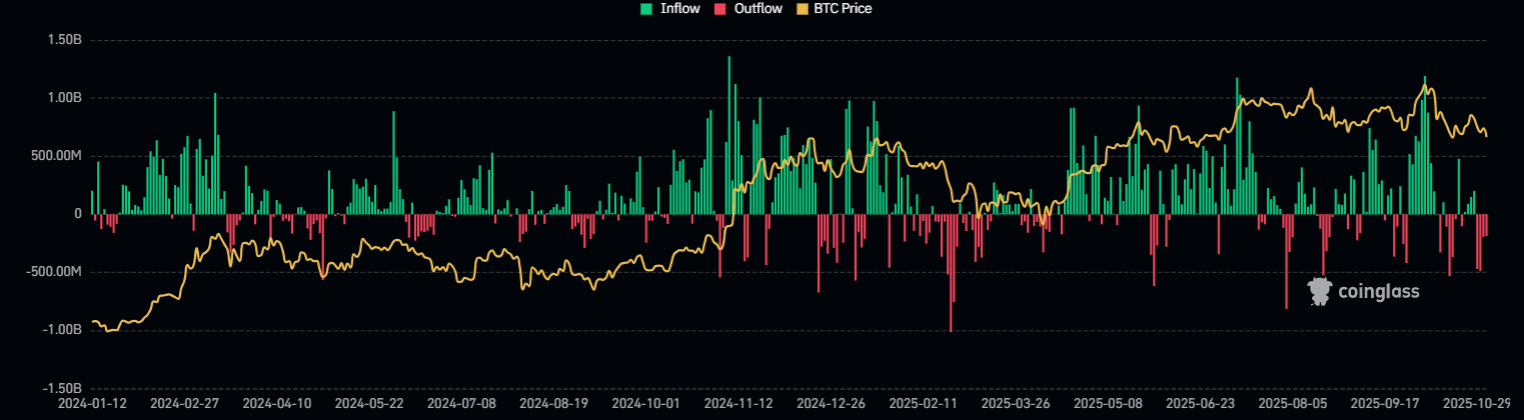 Po většinu roku 2025 přítoky do ETF dominovaly, nyní to však již neplatí. Data ze SoSoValue ukazují, že zatímco v první polovině října přiteklo téměř 6 miliard dolarů, na konci měsíce došlo k odlivům ve výši 2 miliardy dolarů.