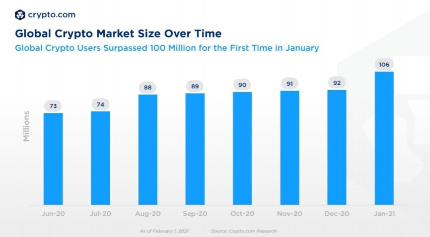 Počet uživatelů kryptoměn letos dosáhl hranice 100 milionů. Zdroj: Crypto.com