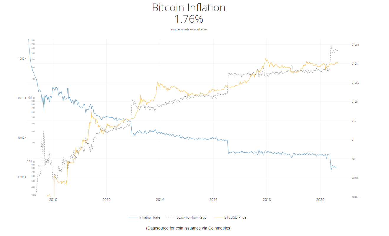 Po posledním halvingu je od května 2020 inflace Bitcoinu na úrovni přibližně 1,8%. To z Bitcoinu dělá atraktivní druh majetku pro investory.