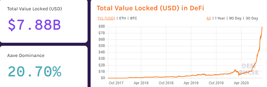 Decentralizované finance jsou hitem poslední doby, což ilustruje i vzestup cen jednotlivých projektů. Nejvyšší počet financí zamčených v projektu má momentálně projekt Aave s 1,63 miliardy zamčených dolarů.