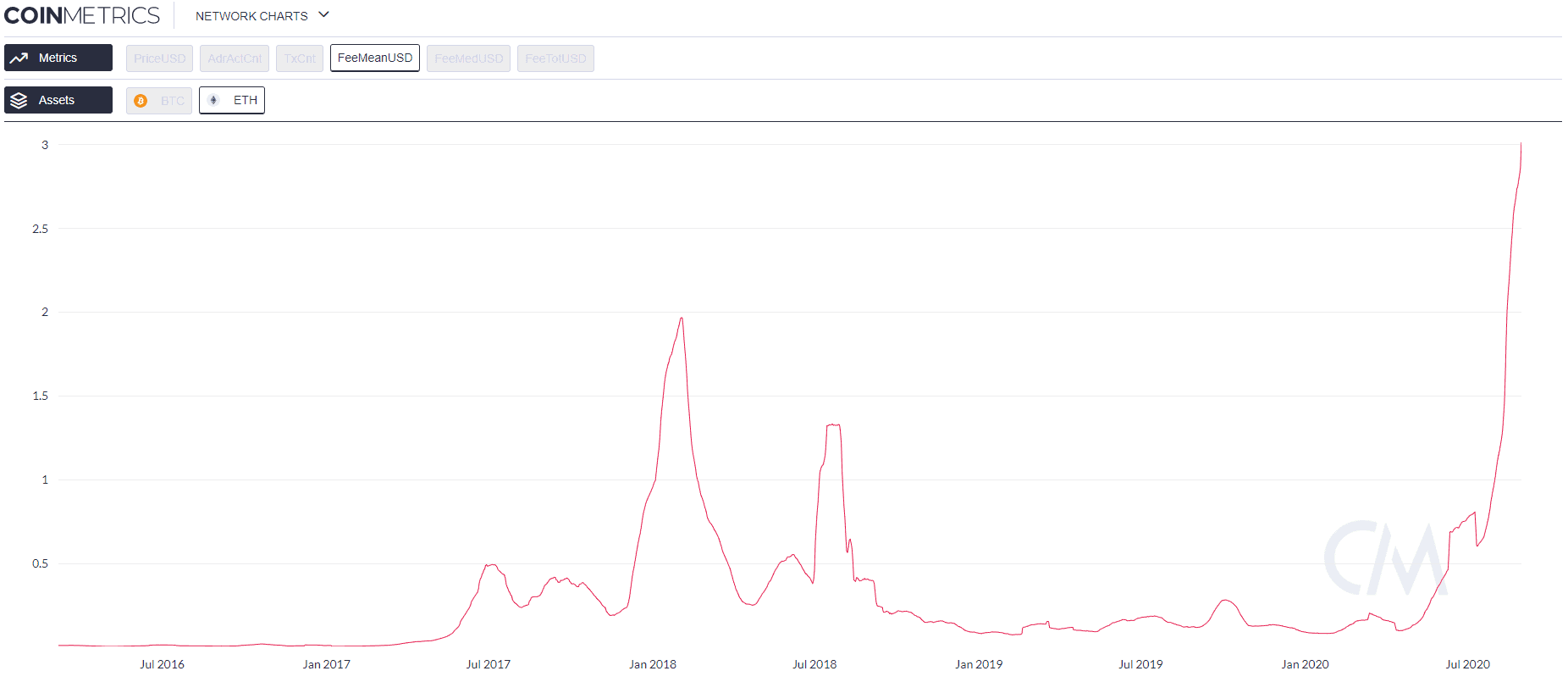 Síť ETH tak vykazuje zdravý růst. Jedním z problémů je ovšem neschopnost blockchainu zvládat vyšší počet transakcí. To se projevuje v silném růstu poplatků na síti.