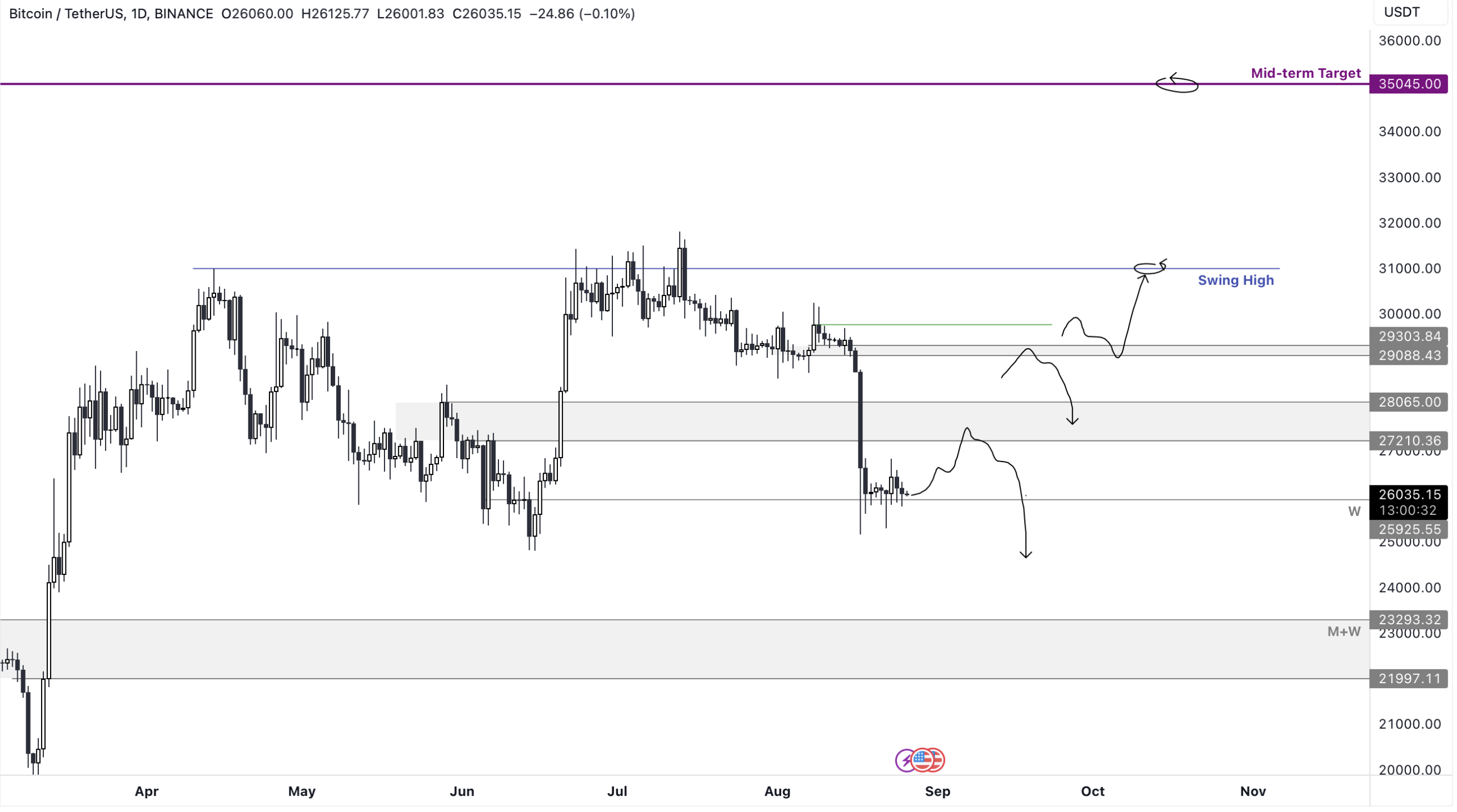 Pokud by zde BTC opravdu byl odmítnutý, míříme na zmíněné supporty k 23 tis. USD. Při překonání 29 700 USD je možné považovat korekci za ukončenou a pokračovat k 35 tis. USD.
