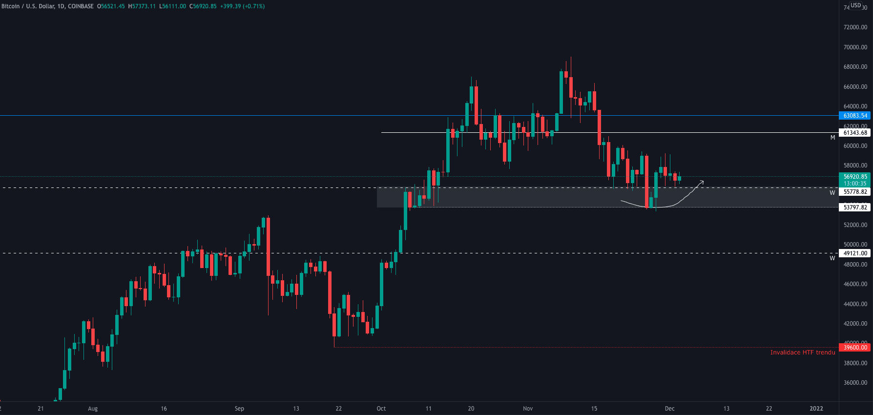 Ahoj tradeři, v minulém updatu se cena BTC pohybovala kolem úrovně 55 tis. USD a náš hlavní narativ byl, že může nastat pokles až k 53 800 USD, odkud bychom měli vidět odraz nahoru. Jak můžete vidět na grafu níže, náš support se vyplnil velmi přesně a Bitcoin se odrazil vstříc prvním rezistencím, na aktuální high cca 59100 USD.