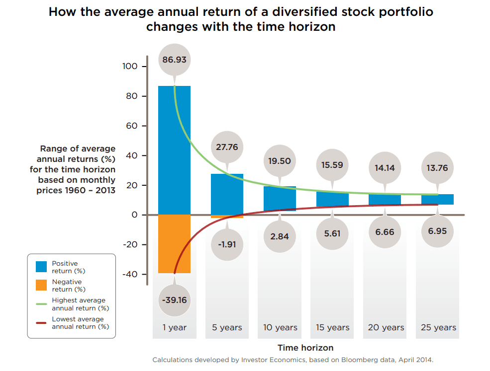 Hodlování se zaměřuje především na zmírňování rizik v podobě krátkodobých výkyvů, které jsou často spojené s ukvapenou reakcí vyvolanou emocemi. V kratším období jsou trhy nevyzpytatelné. V delším horizontu se však průměrná výnosnost stabilizuje.
