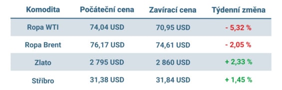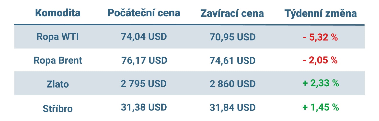 Vývoj ceny nejvýznamnějších komodit v tomto týdnu