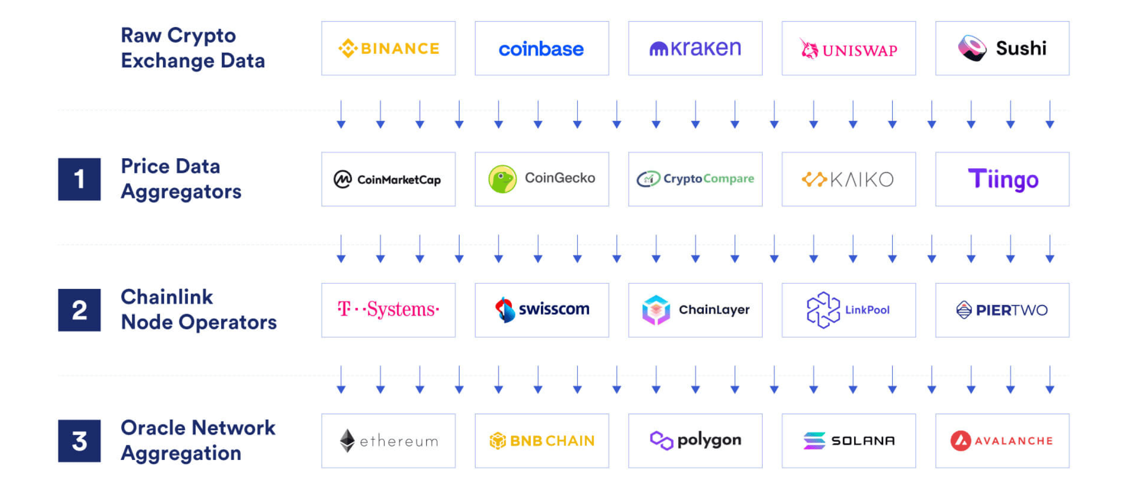 Správnost poskytnutých dat je nejdůležitější složkou celého řetězce a jednotlivé oracles si proto konkurují pokročilými a vyspělými systémy, jakými informace zpracovávají a poskytují, aby eliminovaly každý možný bod selhání.
