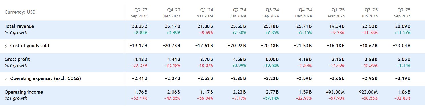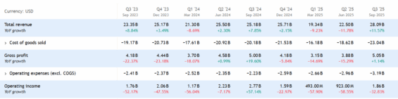 Společnost dosáhla čistého zisku zhruba 1,4 miliardy dolarů a provozního zisku 1,9 miliardy dolarů. Meziročně to ale představuje pokles o více než 30 %. To nejsou příliš dobré zprávy.