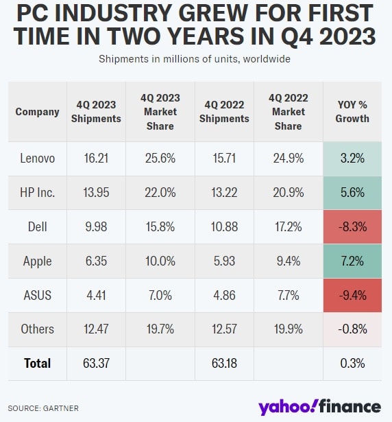 V roce 2023 si počítačový průmysl prošel peklem, protože vykázal nejmenší prodeje za posledních 17 let. Podle společnosti Gartner bylo v posledním kvartále loňského roku prodáno 63,3 milionů počítačů, což představuje 0,3% nárůst, oproti stejnému období v loňském roce.
