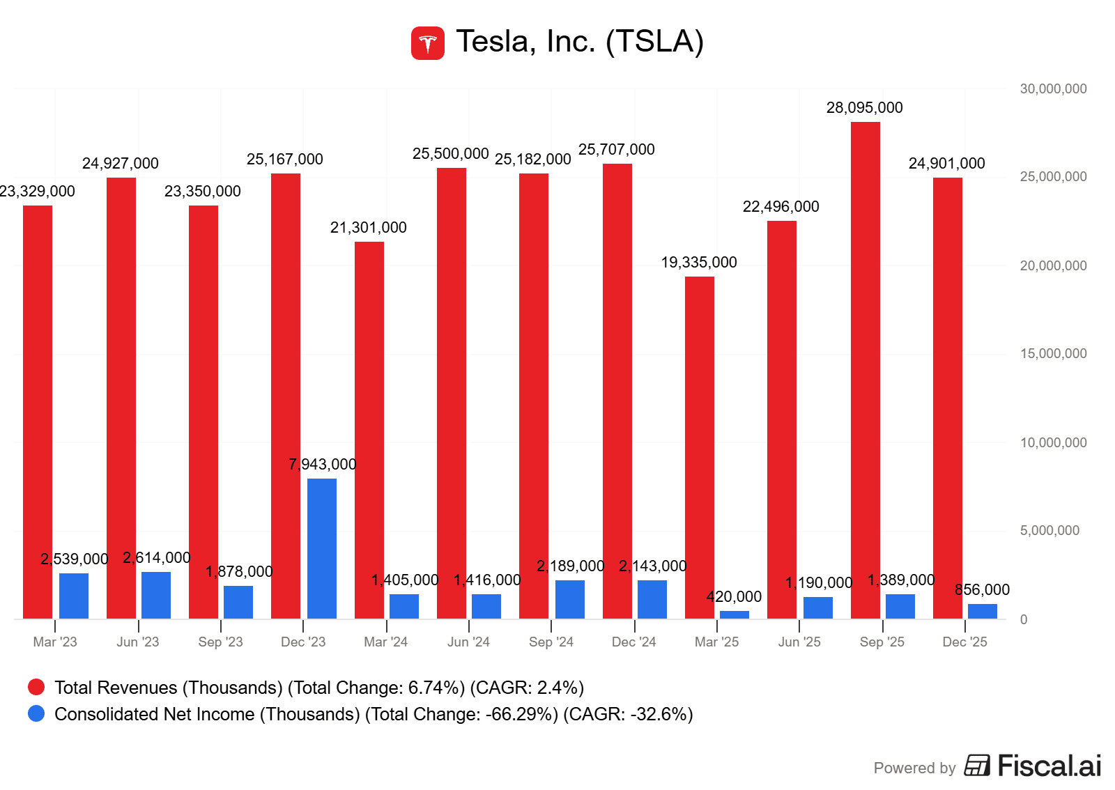 Nutné je nicméně podotknout, že meziročně tržby klesly o 3 %, což je poprvé, kdy Tesla zaznamenala meziroční propad tržeb. Z hlediska zisku společnost vykázala 50 centů na akcii, přičemž analytici predikovali 45 centů.