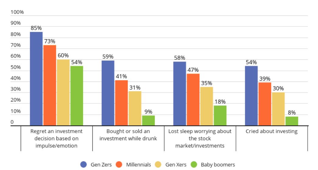 Vzhledem k jejich zjevnému zvyku činit impulzivní nebo zhoršená investiční rozhodnutí by nemělo být příliš překvapivé, že zástupci mladší generace také častěji nemohou kvůli svým investicím v klidu spát nebo dokonce pláčou.