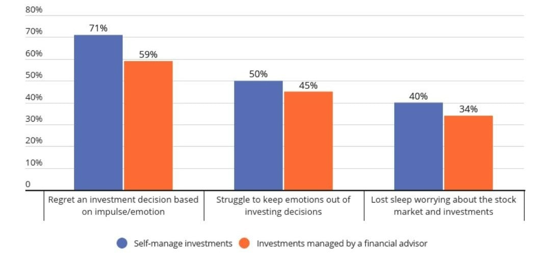 Investoři, kteří si spravují své portfolio sami, častěji činí impulzivní investiční rozhodnutí než ti, kteří si nechávají své portfolio spravovat profesionály. Z jedinců investujících na vlastní pěst, učinilo 71 % rozhodnutí, kterého litovali.