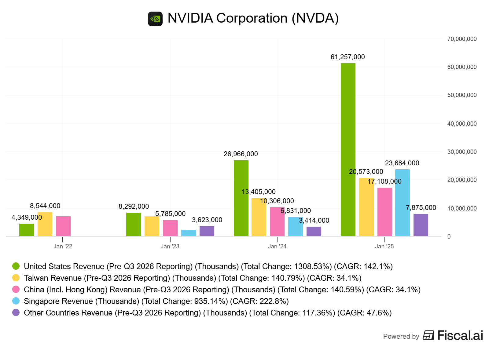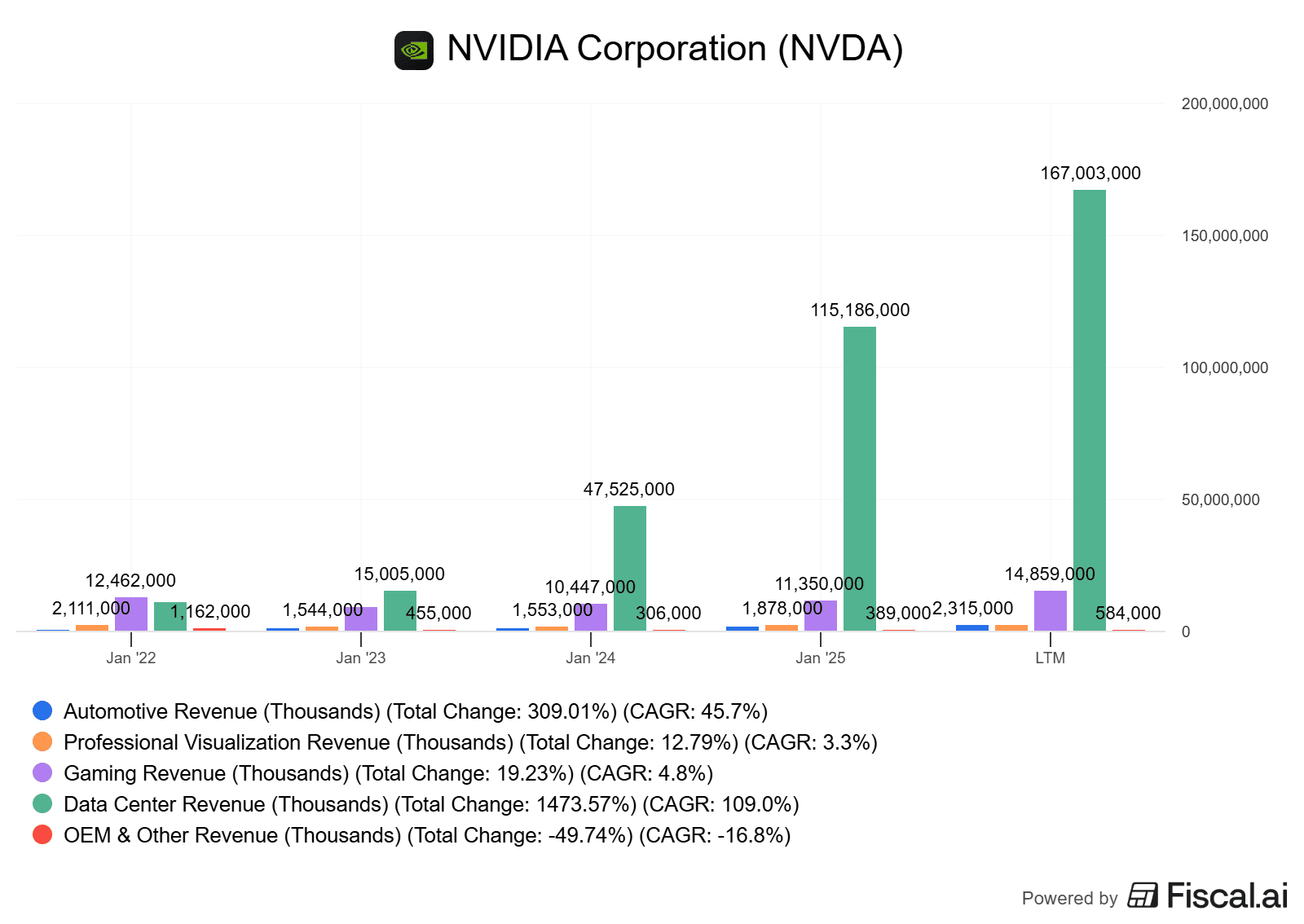 Díky tomu Nvidia zaznamenala výrazný růst tržeb, které často rostly dvouciferným nebo trojciferným tempem.