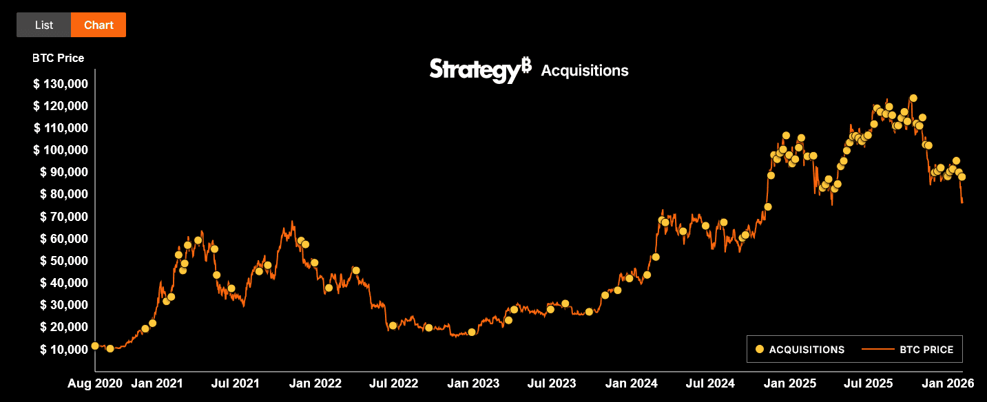 Její průměrná nákupní cena Bitcoinu se nachází aktuálně na 76 052 dolarech a již nyní je tak ve ztrátě cca 900 milionů dolarů.