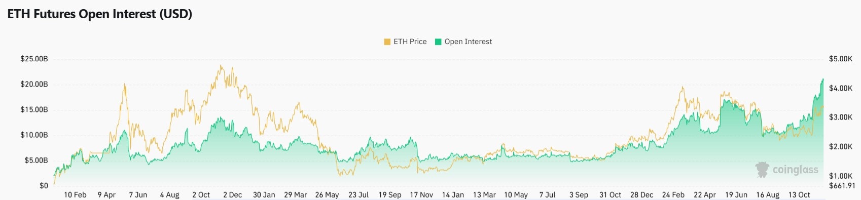 Open interest na ETH je nyní o 90 % vyšší než na vrcholu v roce 2021