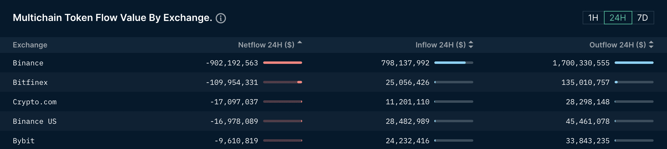 Ani nový týden nezačal pro Binance pozitivně. Analytická společnost Nansen spočítala, že z burzy za 24 hodin odešlo kolem 1,7 mld. USD kryptoaktiv oproti 0,8 mld., které byly vloženy. Binance také dočasně pozastavila výběry stablecoinuUSDC kvůli swapu tokenu z blockchainu Etherea na blockchain Tronu. Načasování to bylo vskutku nešťastné a jindy poměrně běžná činnost vzbudila hodně pozornosti.