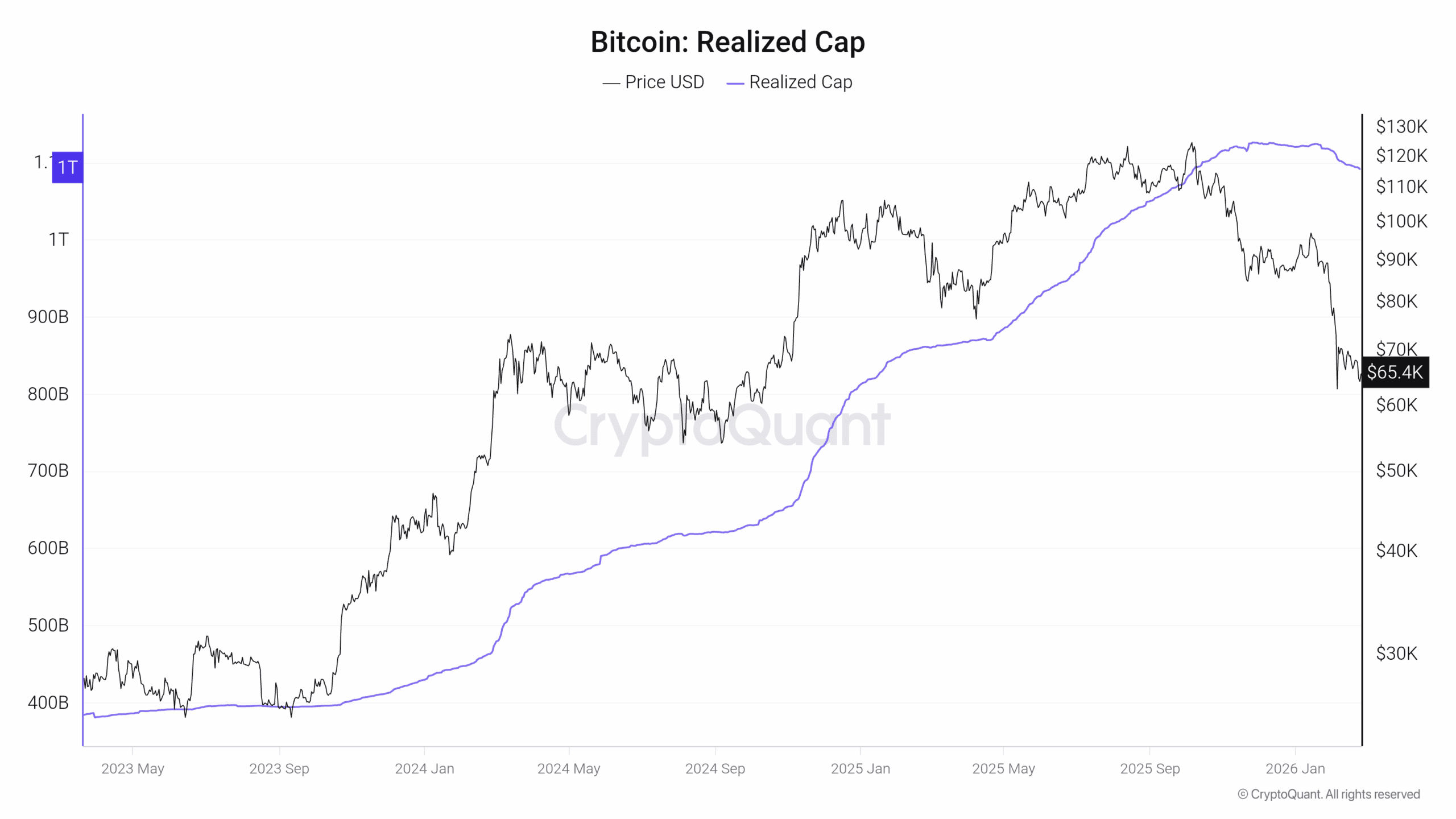 Jedním z nejpřesnějších ukazatelů kondice trhu je Realized Cap – realizovaná kapitalizace, která oceňuje každou minci podle ceny jejího posledního pohybu. Tento indikátor již druhý měsíc v řadě klesá.