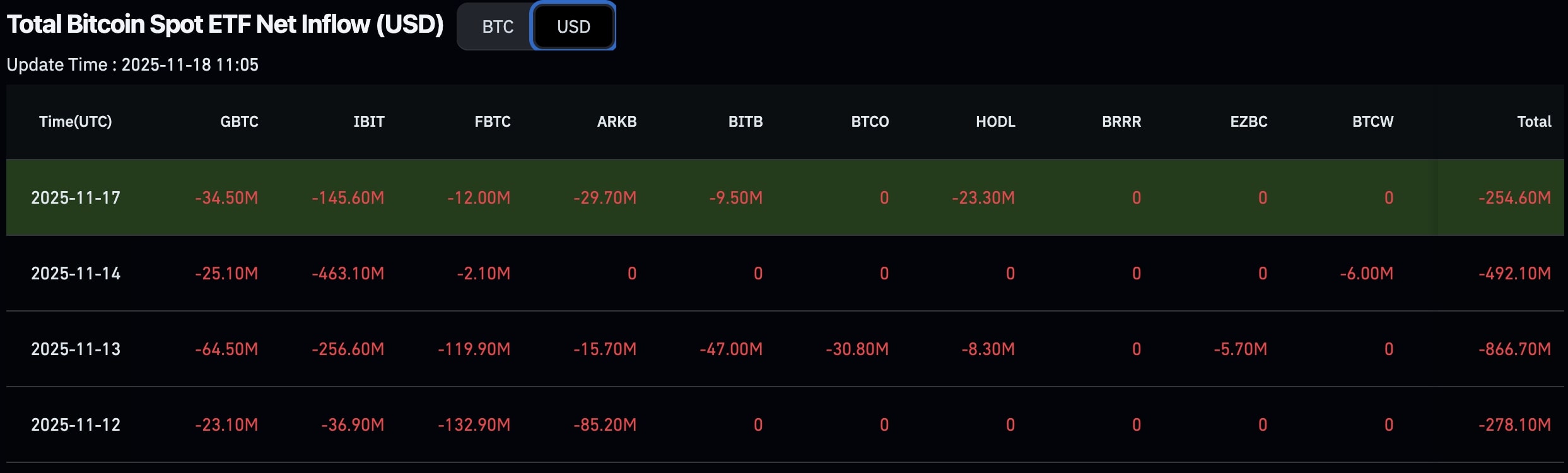 Odlivy ze spotových Bitcoin ETF za poslední čtyři dny