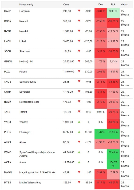 Dobrou zprávou pro investory je znovuotevření moskevské burzy MOEX, která se ve čtvrtek 24. března opět otevřela investorům. K jejímu uzavření došlo 25. února, kvůli ochraně ruských akciových společností před uvalenými sankcemi především z EU a USA, které by mohly poškodit finanční stabilitu ruských společností.