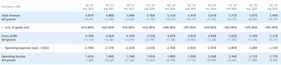 Upravený zisk na akcii (neúčetní EPS) činil 5,31 USD, čímž firma překonala tržní očekávání (odhad 5,18 USD). Čistý zisk podle účetní metodiky GAAP pak dosáhl 4,18 USD na akcii.