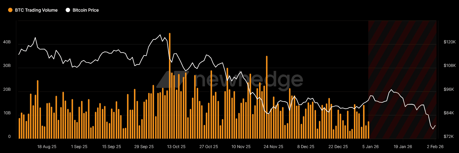 Jedná se o propad objemů na přibližně polovinu od října 2025.