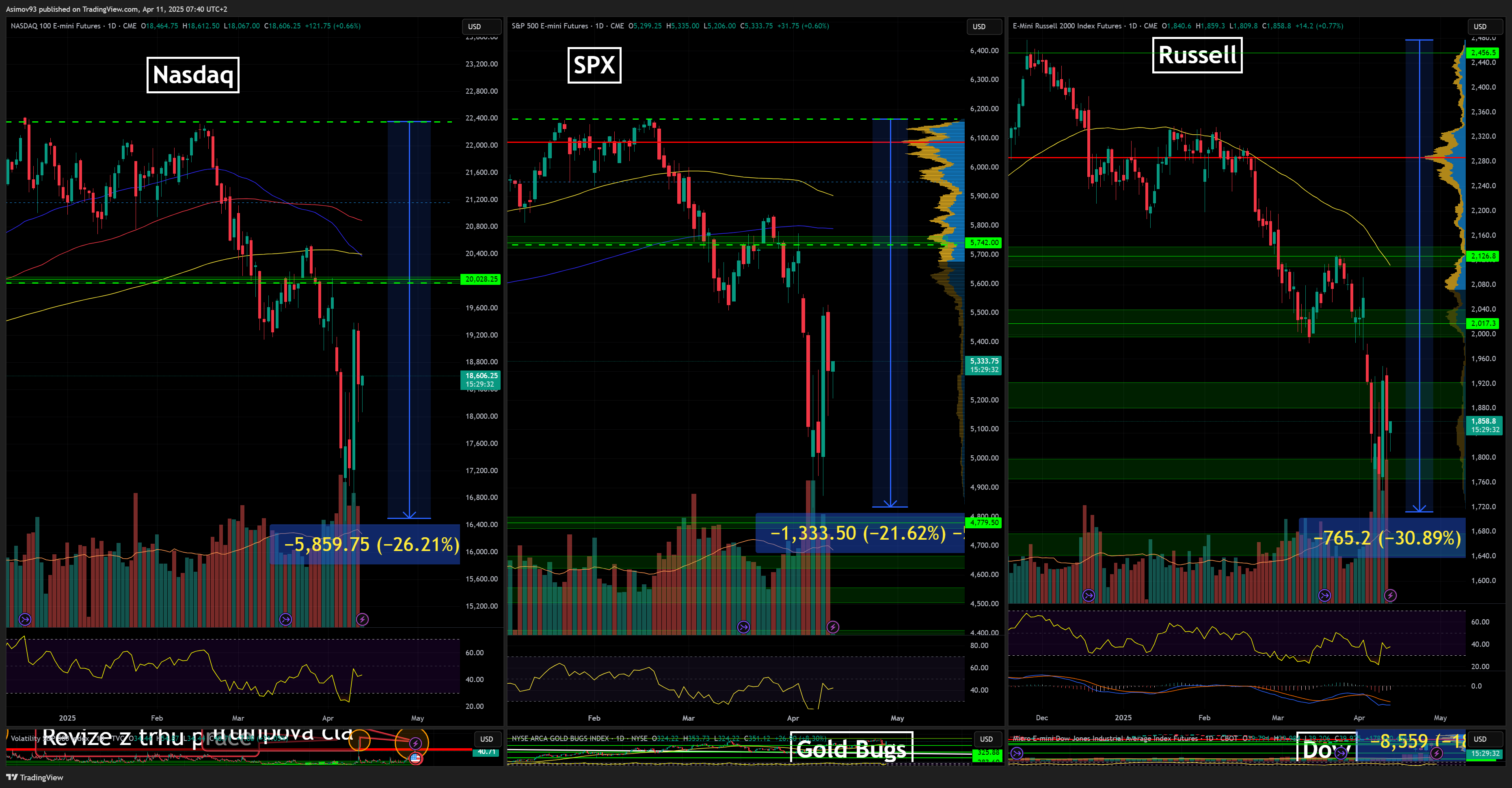 Ztráty pro Nasdaq dosahovaly 26 %, pro S&P 500 pokles po low činil 21,6 %, zatímco Russell 2000 odepsal 30,89 %. VIX dosáhl hodnoty více jak 60 bodů, což, jak jsem psal výše, je jedna z nejvyšších hodnot za předešlých 16 let.