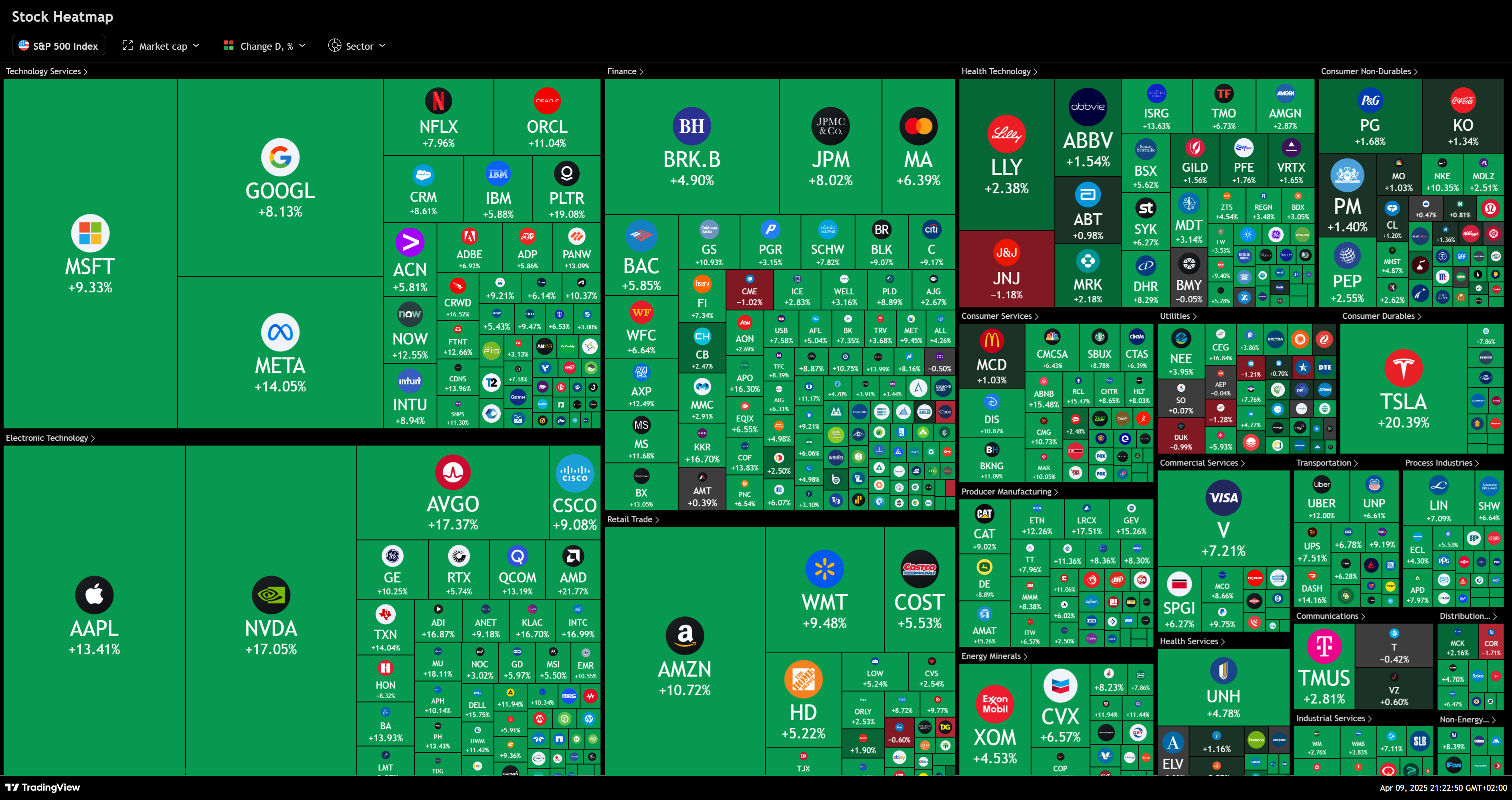 Jakmile Trump, alespoň na chvíli, ustoupil a ohlásil 90denní pauzu pro zavedení všech recipročních cel (s jedinou výjimkou – Čína), akciové trhy zaznamenaly největší obrat nahoru ve své historii. I minimální známka deeskalace byla dostatečným impulsem pro technický odraz.