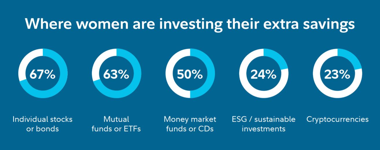 Naštěstí stále více žen podniká kroky, které jim pomohou k většímu růstu jejich peněz prostřednictvím investování. Ve skutečnosti dvě třetiny (67 %) žen uvádějí, že nyní investují úspory, které mají mimo penzijní účty a pohotovostní fondy, na akciovém trhu, což představuje 50% nárůst oproti roku 2018, kdy společnost Fidelity tuto studii prováděla naposledy.