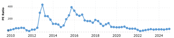 Vývoj P/E u Netflixu