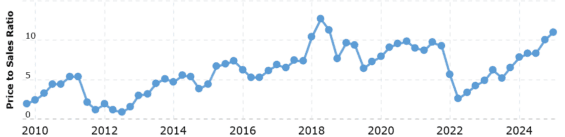 Aktuální P/S Netflixu je totiž 11, což je výrazně nad historickým 10letým průměrem, který je 7.
