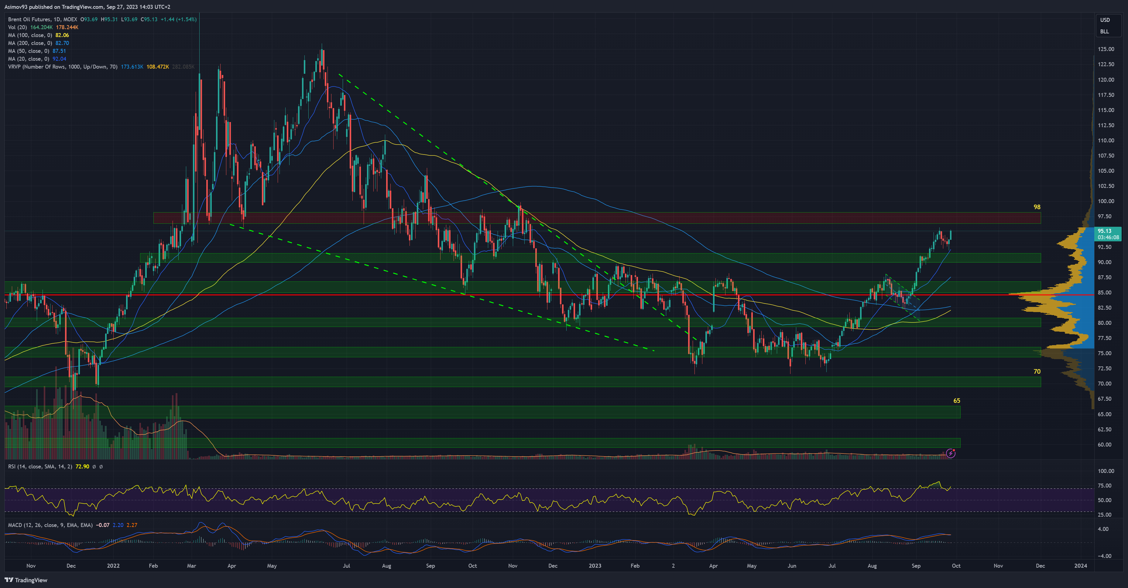 Nesmím opomenout, že každý trh se vyvíjí cyklicky. Hrozně dlouho šla cena ropy víceméně dolů. Od března 2020 do března 2022 šla naopak cena rychle nahoru. Více jak rok byla přestávka a nyní kurzový růst trvá cca tři měsíce. Jestli je tohle začátek další rostoucí vlny, může trvat roky a já u toho chci být.